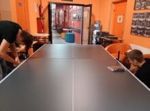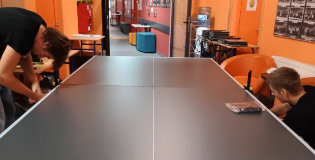 Las bitów, śrubki i śrubeczki, grzechotka… Niezbędne akcesoria na lekcji LD! Uczniowie klas III skręcali dziś stół do ping-ponga. Będzie stał na zewnątrz, ale pierwsze próby trzeba zrobić