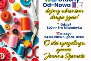 Fantastyczna akcja w naszej szkole! Dla wszystkich, którym bliska jest ekologia, styl no waste, którzy lubią twórcze zajęcia.Szczegóły poniżej.Ciuchy Od-Nowa – dajmy ubraniom drugie życie! Sylwia Chodyniecka –