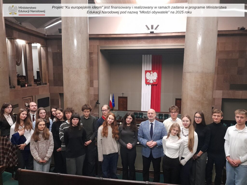 W trakcie wizyty odbyło się również spotkanie z posłem na Sejm RP Panem Piotrem Kandybą. Rozmowa dotyczyła m.in. ich codziennej pracy, odpowiedzialności poselskiej oraz aktualnych wyzwań, przed którymi stoi parlament. Uczestnicy mieli możliwość zadania pytań, co pozwoliło lepiej zrozumieć praktyczne aspekty działalności ustawodawczej oraz realia pracy politycznej.