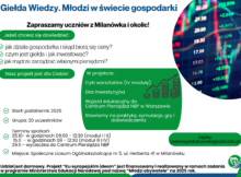 Zaproszenie OtwarteGiełda Wiedzy. Młodzi w świecie gospodarki Zapraszamy uczniów z Milanówka i okolic! Jeśli chcesz się dowiedzieć: jak działa gospodarka i skąd biorą się ceny? czym jest giełda